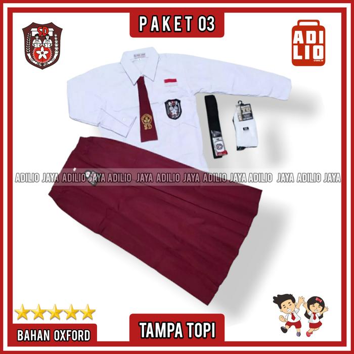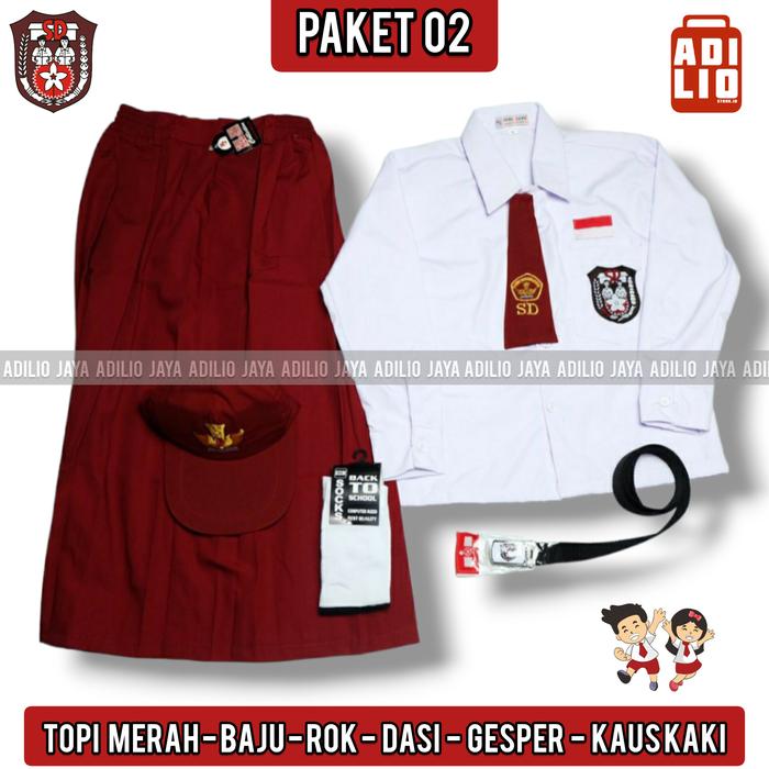 SETELAN LENGKAP SERAGAM SEKOLAH SD BAJU PUTIH SD LENGAN PANJANG ROK MERAH PANJANG UNTUK ANAK PEREMPUAN - PAKET 03, KELAS 1