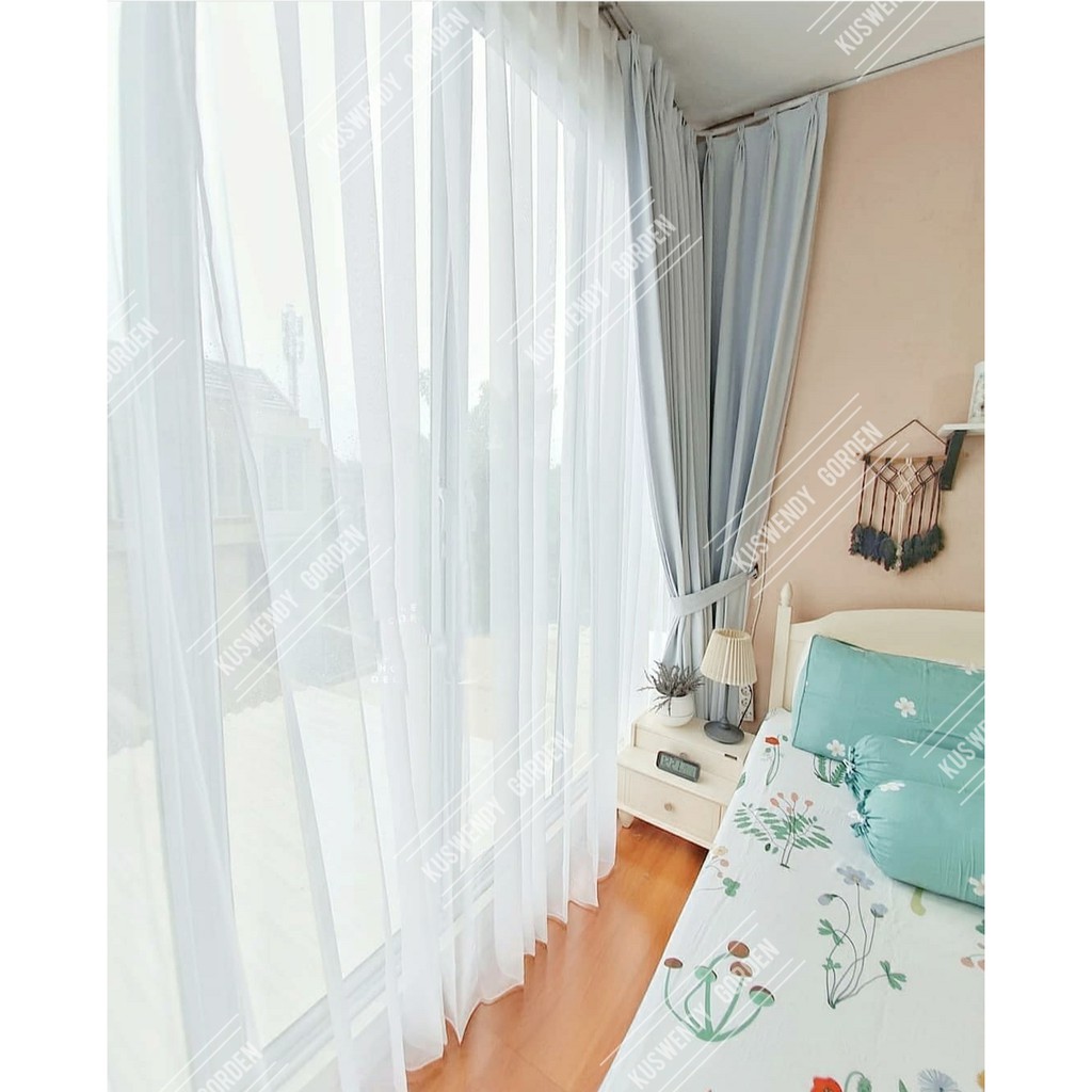 Gorden Vitrase Polos 300 & 250 cm Tinggi 3 meter Hordeng Putih Plisket Jendela Pintu Tirai Minimalis