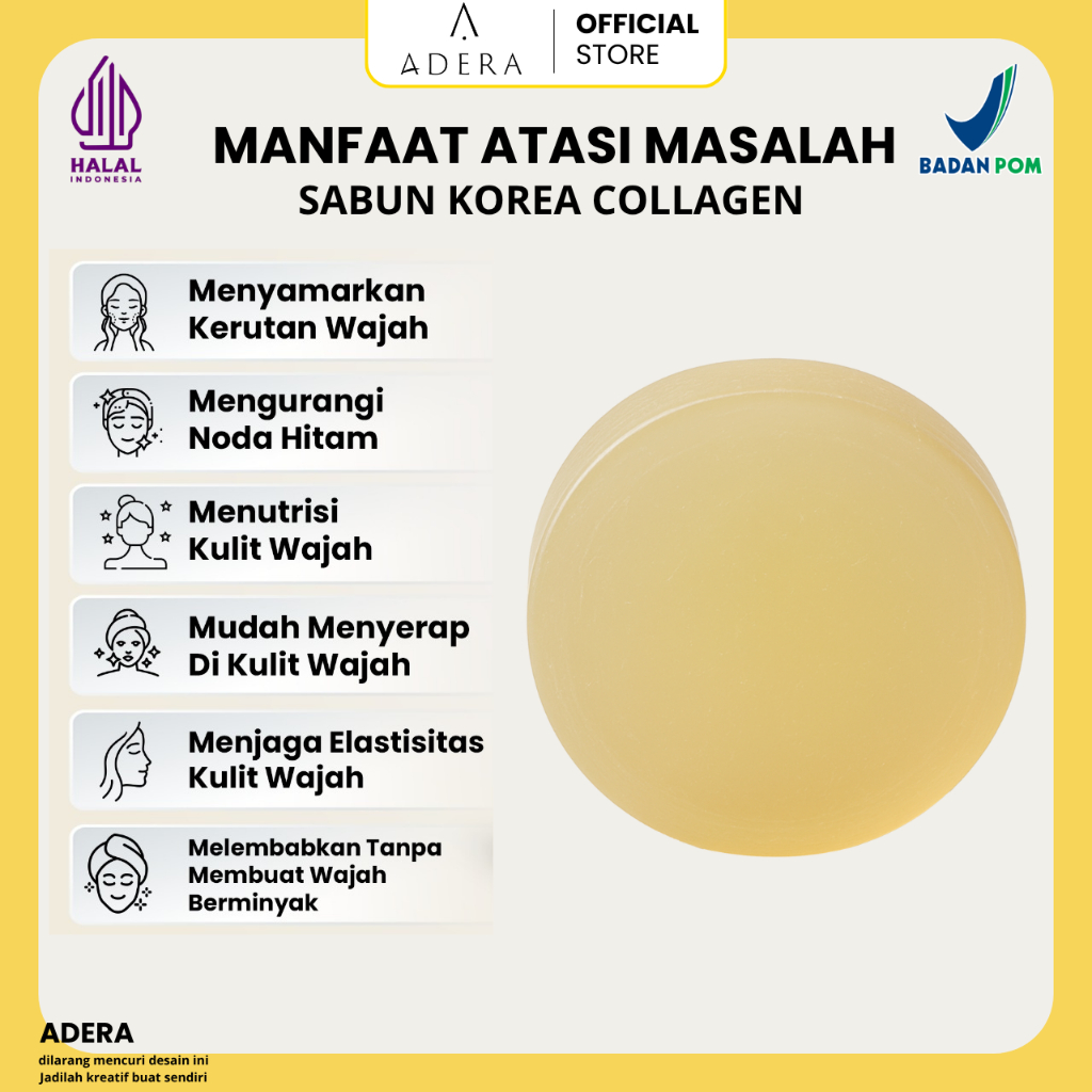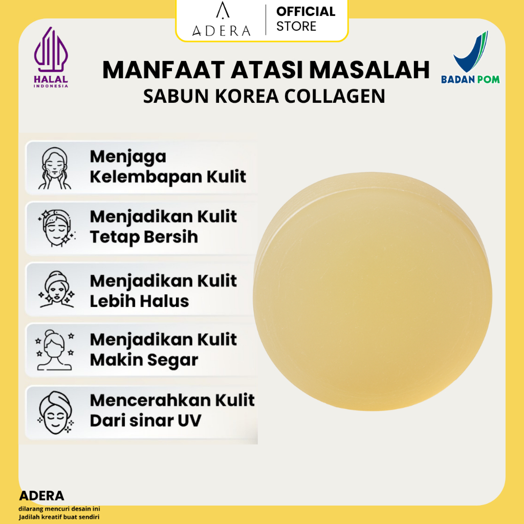 Adera Sabun Korea Collagen Wajah & Badan Glowing Putih Bersih Bebas Jerawat Kusam Flek Bintik Hitam Keriput Sudah Bpom H