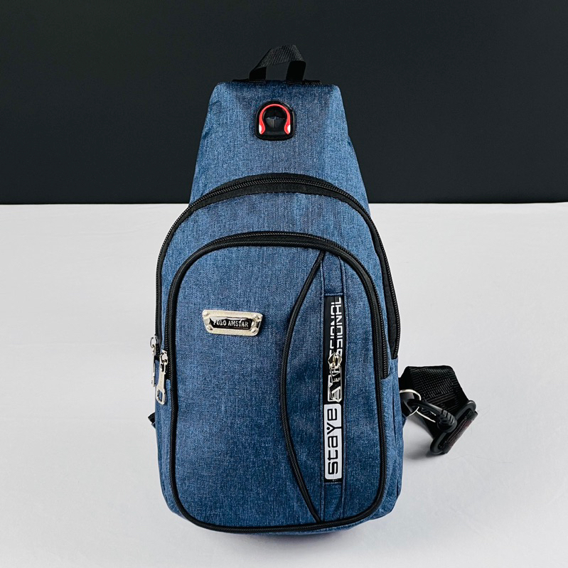 Tas Selempang Pria Terbaru Slingbag Polo Amstar Bahan Nilon Denim