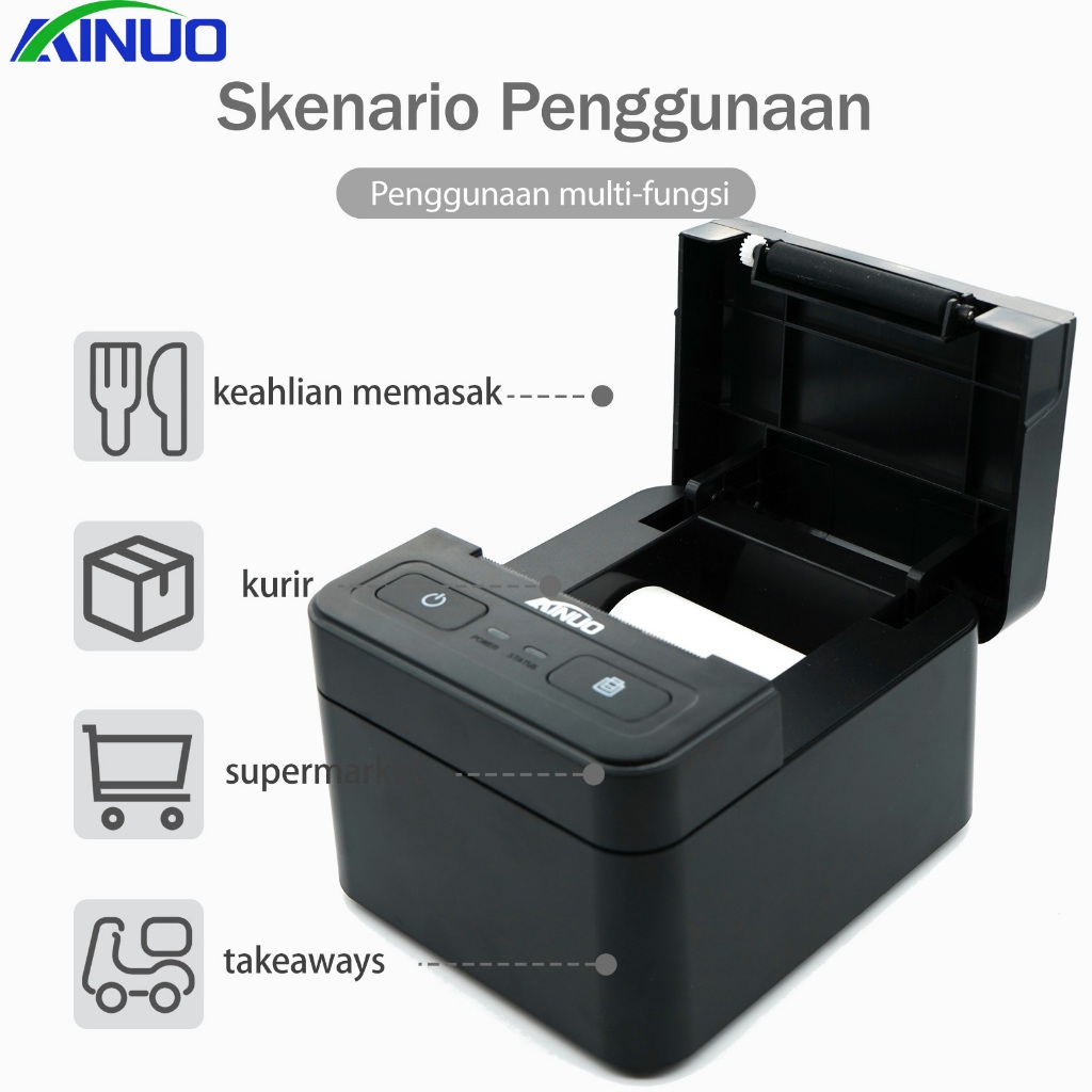 Ainuo 58Mm Thermal Receipt Printer Printer Stiker Waybill Ekspres Kertas Tiket Gratis Dilengkapi Dengan Antarmuka Blueto