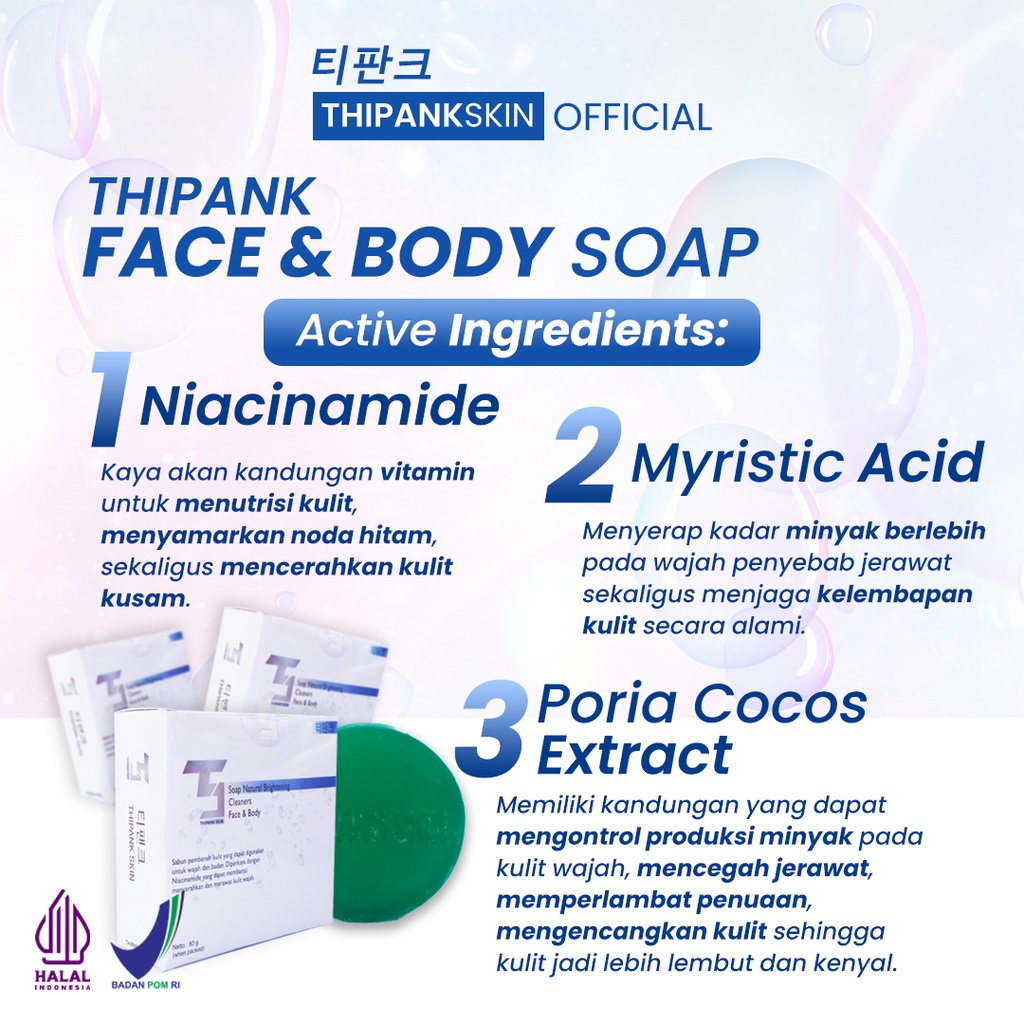 Paket Hemat 2 Pcs Thipank Skin Face And Body Soap Sabun Pemutih Wajah Sabun Pemutih Badan Bpom Origina/Sabun Pemutih Waj