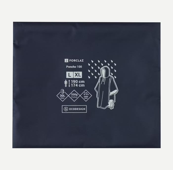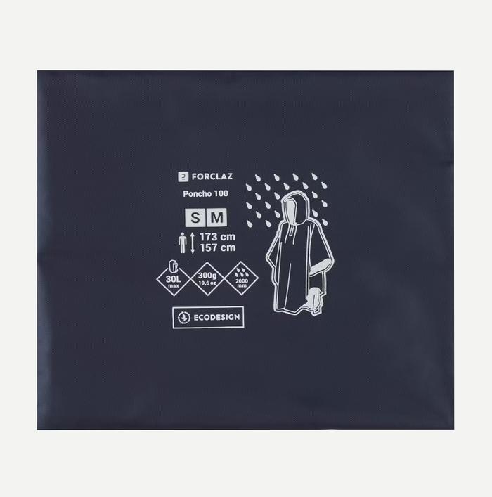 FORCLAZ TREK 100 PONCHO JAS HUJAN TREKKING DEWASA RINGAN - S/M