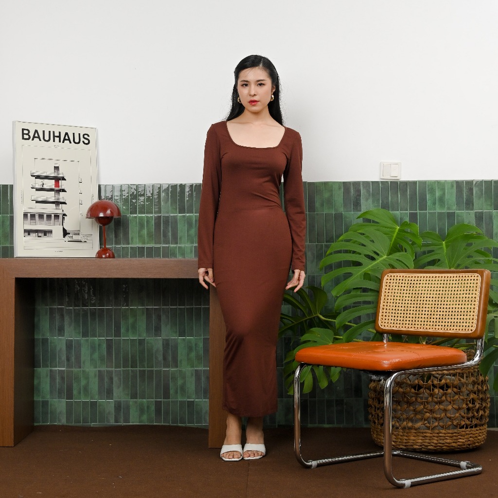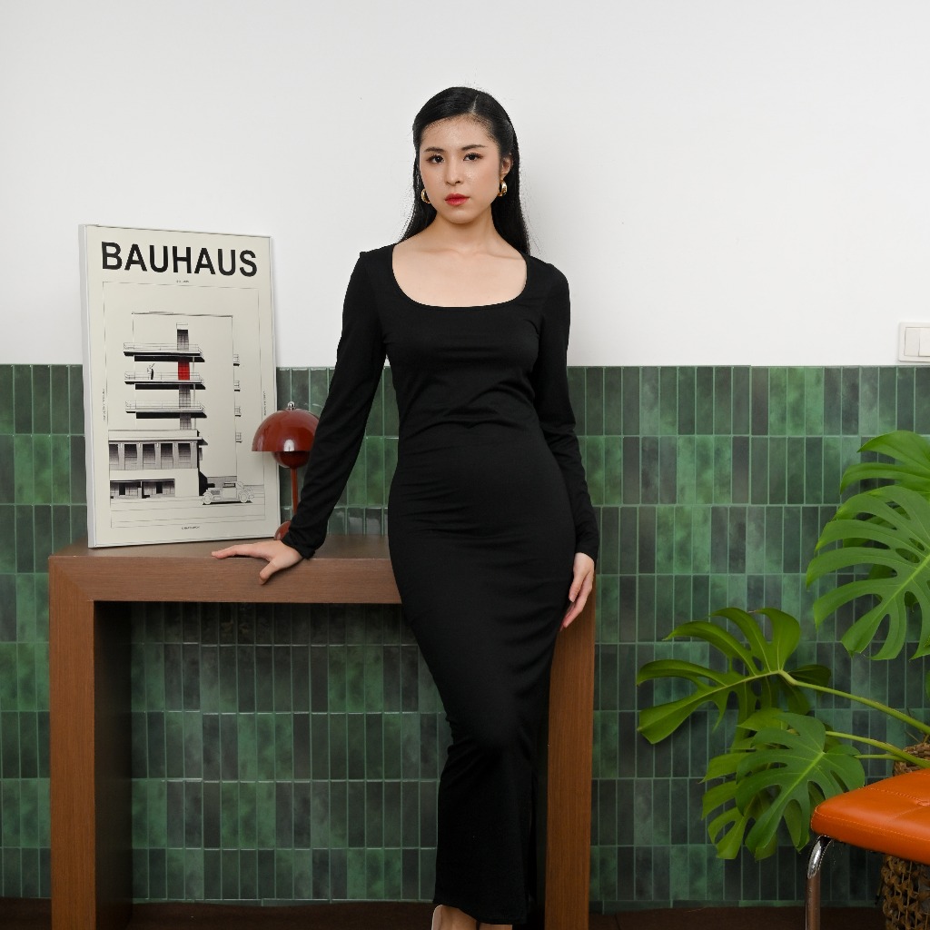 Mina Sexy Maxi Dress Bodycon Korean Style Long Slevee