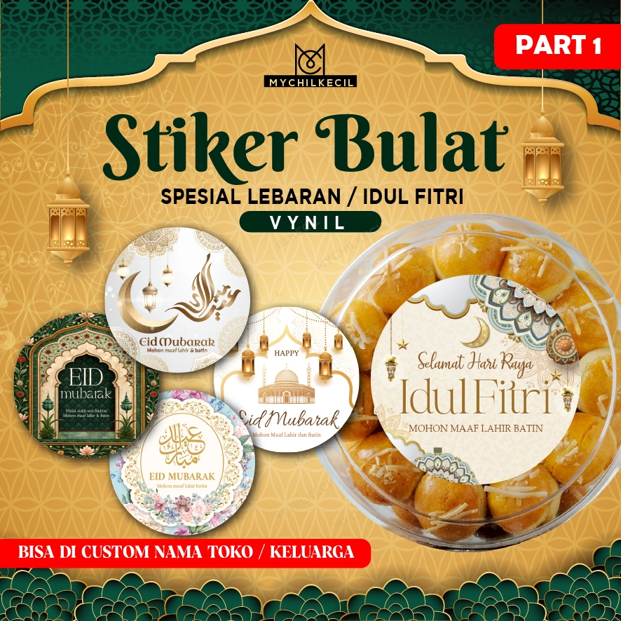 Stiker Cutting Bulat Vinyl (Anti Air) Lebaran Custom / Idul Fitri Custom Ukuran & Tulisan / vynil /ramadan