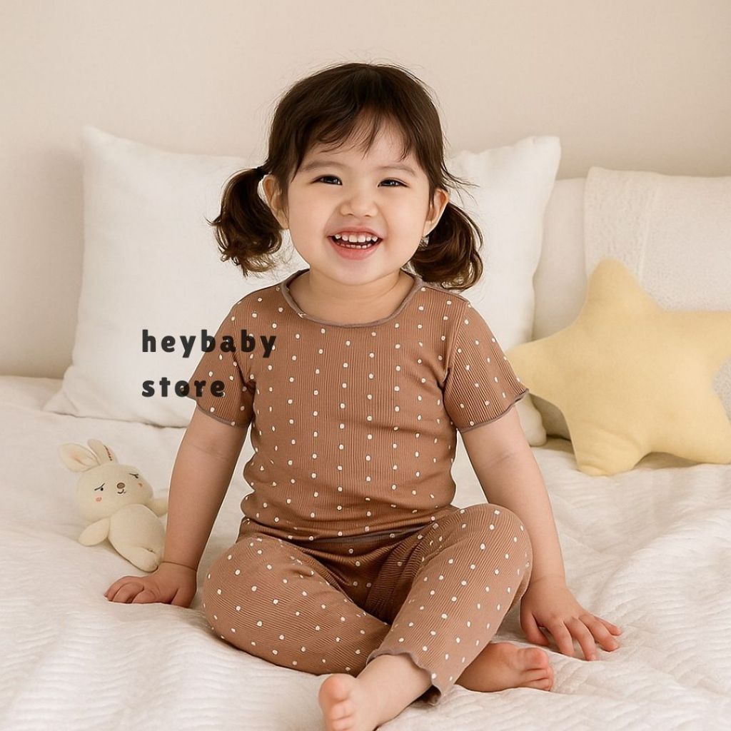 heybaby SET PIYAMA POLKA RIBB EBV Baju Setelan Anak Piyama Perempuan im Berkualitas 1-7 Tahun