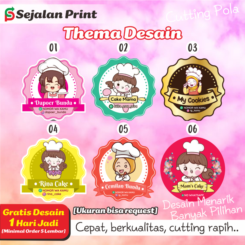Stiker Label Custom Kemasan Cutting Pola Gratis Desain / Stiker Logo Makanan / Stiker Logo Minuman