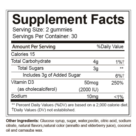 Vitamin D3 2000 Iu Anak Gummy Suplemen Tulang & Imun, Bantu Serap Kalsium, Perkuat Tulang & Gigi Penambah Imun & Tulang
