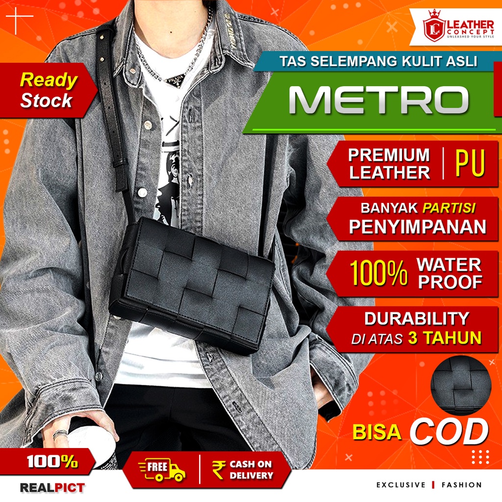 Leather Concept Tas Selempang Pria Kulit Tas Pria Kecil Tas Jalan Pria Anyaman Metro