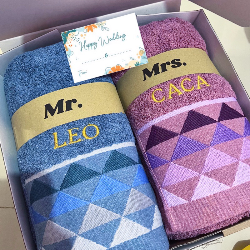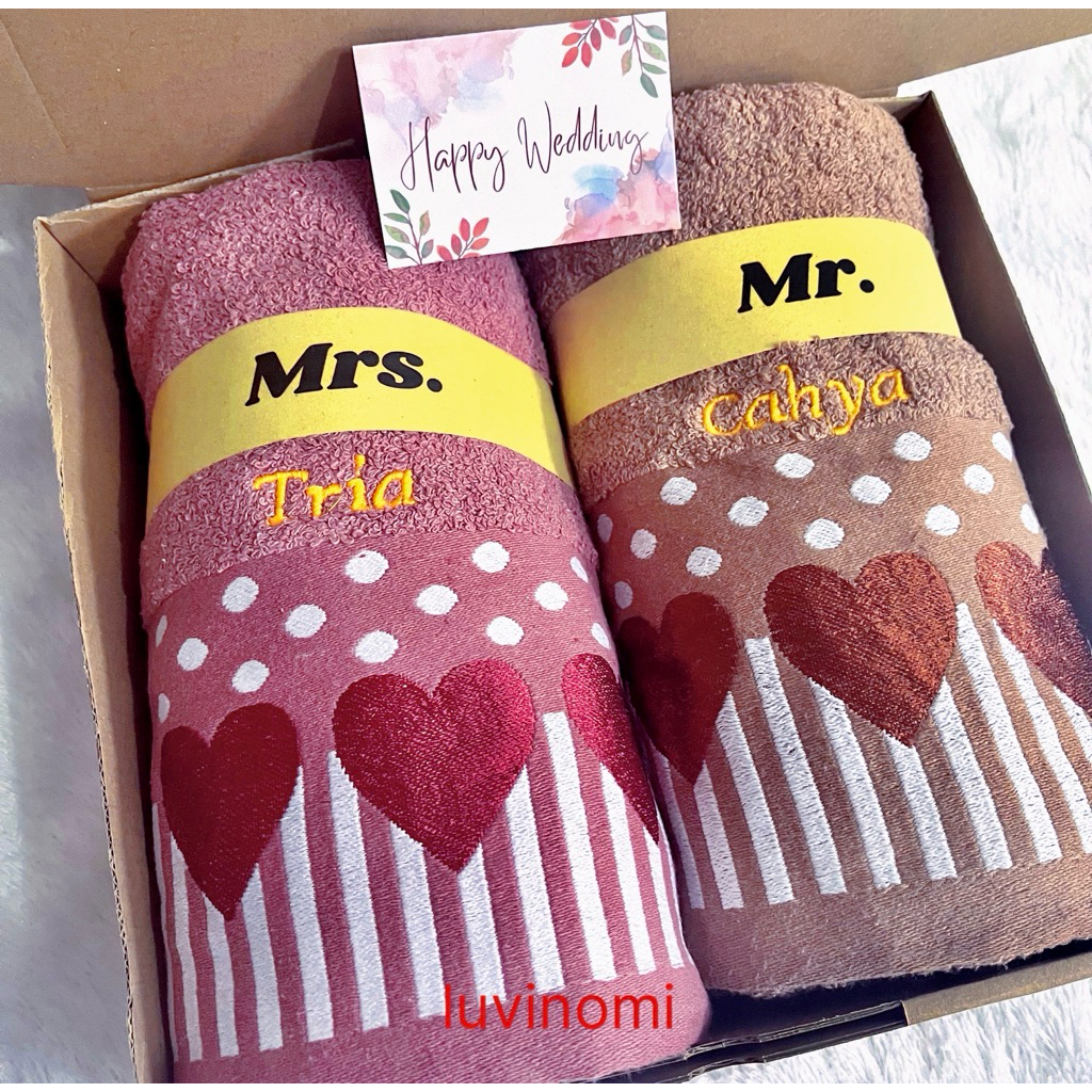 Hampers pernikahan handuk couple jumbo Bisa BORDIR NAMA , hampers kado wedding anniversary ulang tahun dll