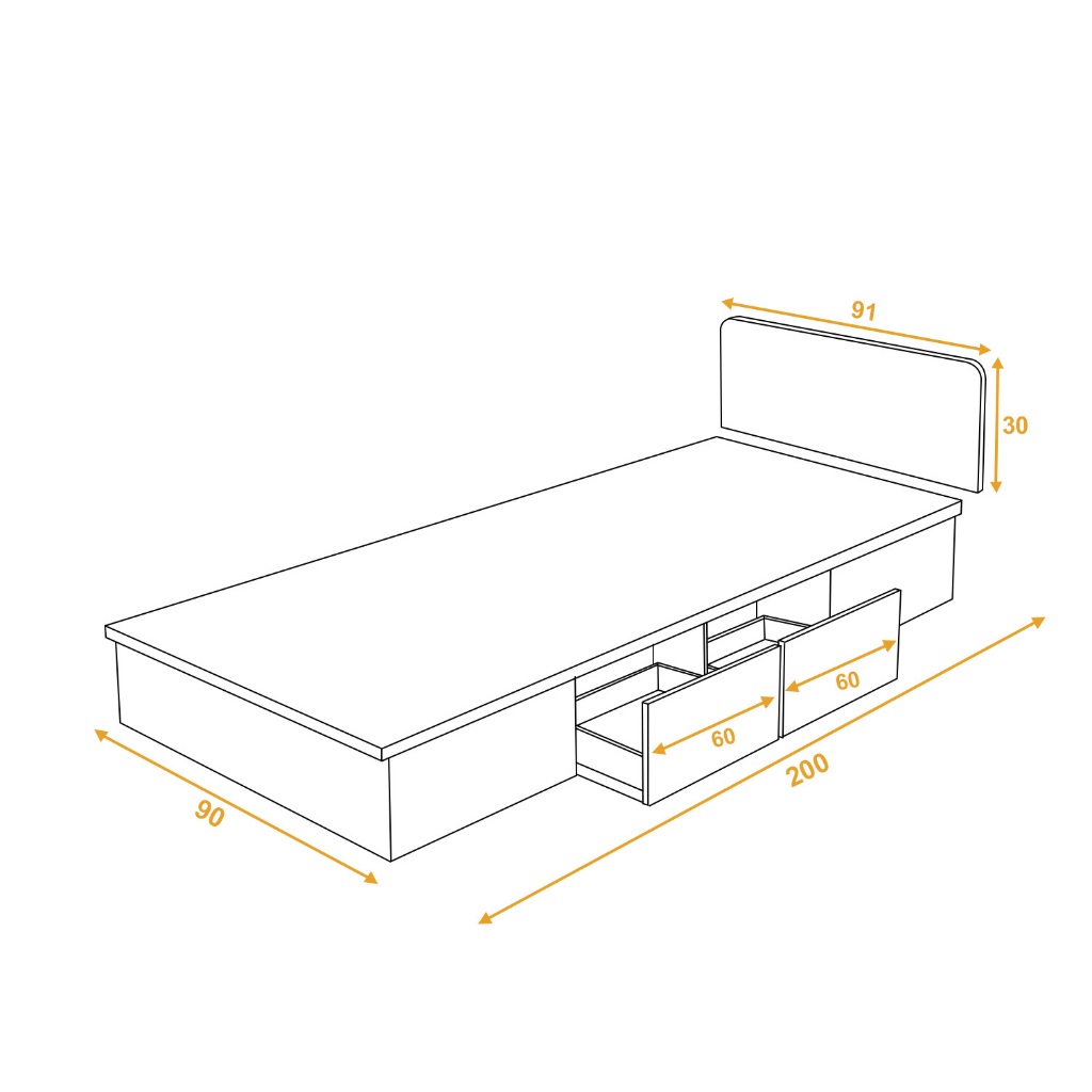 Kirana Iowa - Ranjang Dipan Kayu Rangka Tempat Tidur Divan Putih Modern Minimalis 90 X 200