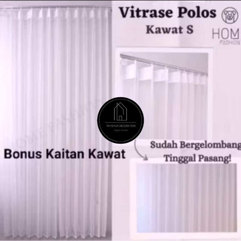 VITRASE GORDEN PUTIH POLOS PREMIUM IMPORT PLISKET PENGAIT KAWAT S TIRAI DALAMAN GORDEN VITRAGE TRANSPARAN