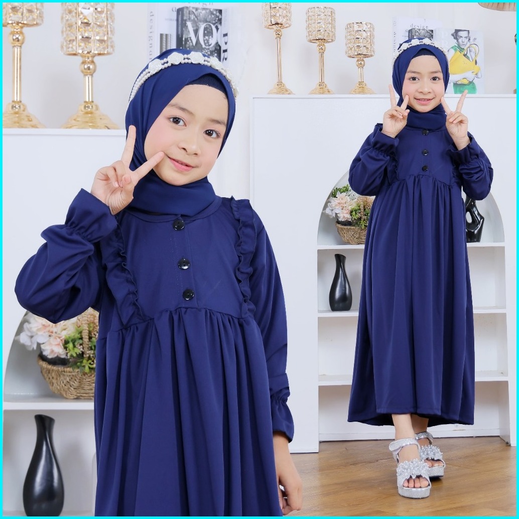 Gamis Maryam - Biru Navy - Gamis Anak Perempuan Gamis Anak Warna Navy Blue Biru Tua 1-12 Tahun Gamis Putih Manasik Haji