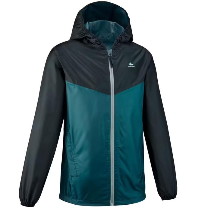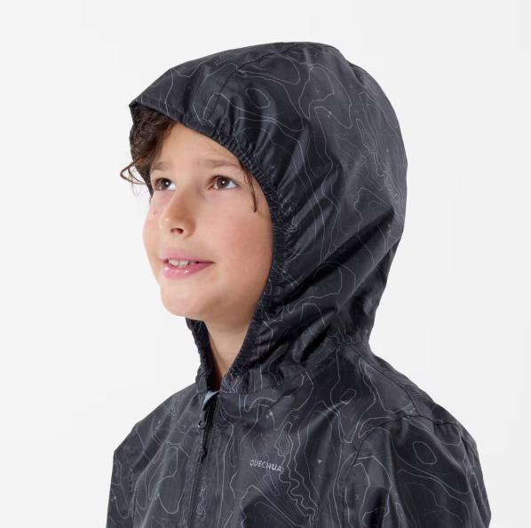 QUECHUA MH150 JAKET HUJAN ANAK UNISEX HIKING TAHAN AIR - HITAM, 131-140CM 8-9T