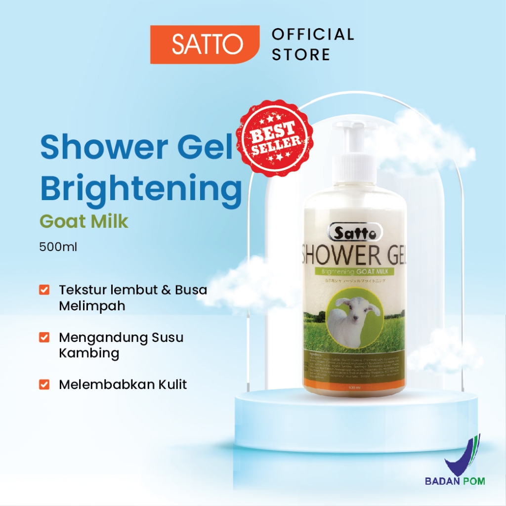 Satto Sabun Mandi Shower Gel Brightening Goat Milk Botol 500Ml - Susu Kambing , Mencerahkan & Melembabkan Kulit