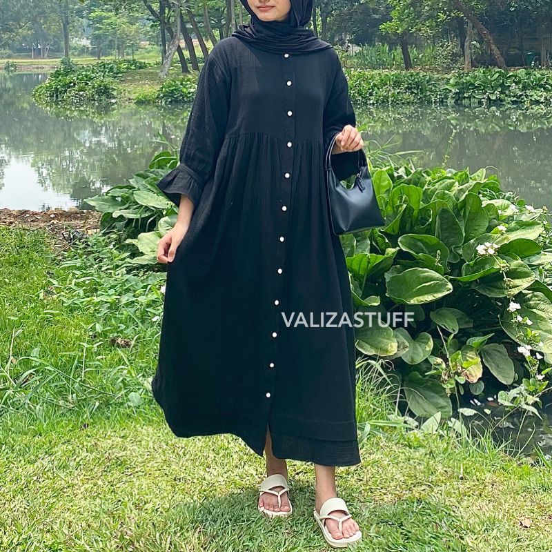 Valiza - Audrey Midi Dress / Dress Wanita / Basic Midi Dress / Gamis Wanita Polos Busui Friendly (All Size & Xl)