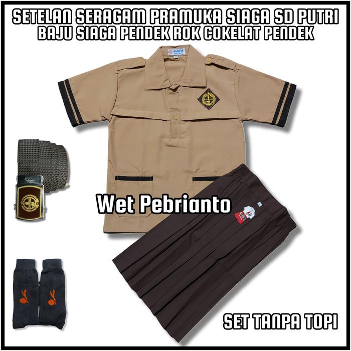 SETELAN SERAGAM PRAMUKA SIAGA SD PEREMPUAN BAJU PENDEK ROK PENDEK - SET TANPA TOPI, 6 TAHUN