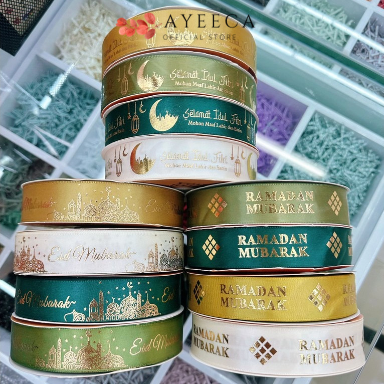 AYEECA - PTA10 LEBARAN IDUL FITRI Pita Kado 2,5cm 20 YARD / Pita Dekorasi Buket