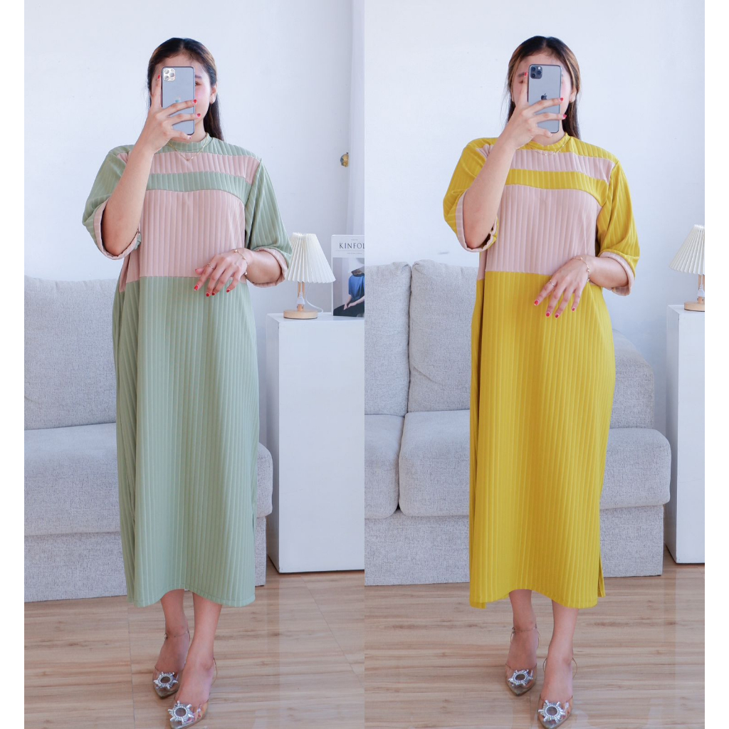 Leona Dress - Dress Pendek Casual Dua Warna Kombinasi Bahan Hornet Melar Ghs