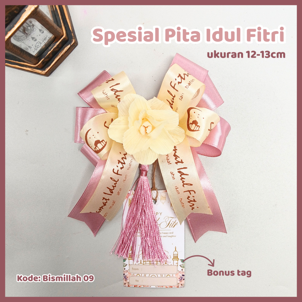 READY STOCK PITA IDUL FITRI DUSTY PINK BONUS TAG Hiasan hampers parsel lebaran toples kue bingkisan