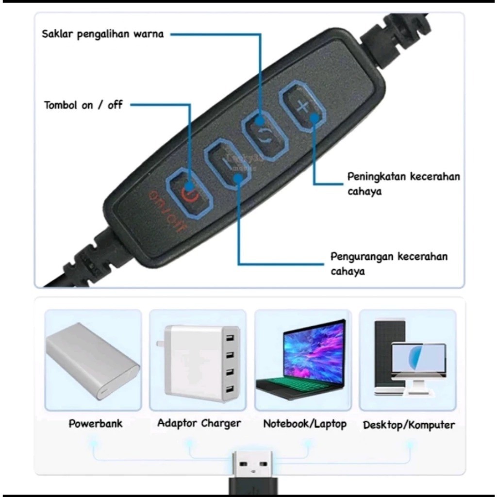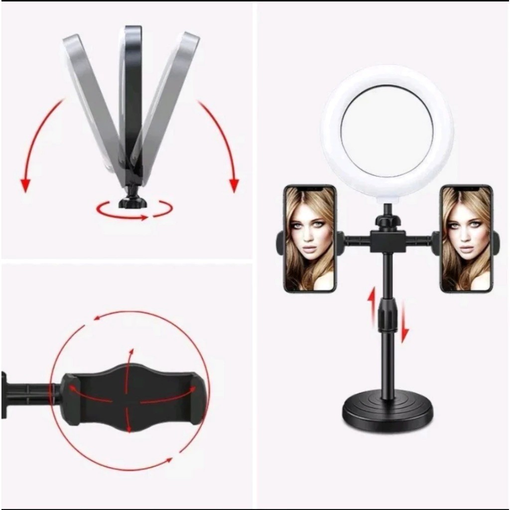 HML | TRIPOT Ring light 16cm + Tripod T 28cm with 2 Holder HP Ring light Tripod Mini Stand HP stream Selfie Make Up Vlog Lampu 3 Mode
