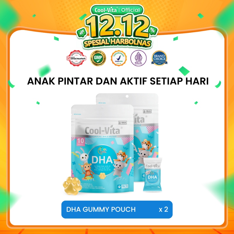 Coolvita Dha Gummy 2 Pouch - Vitamin Anak Manis Dan Enak Dengan Minyak Alga Dha 50Mg Omega 3 Pengganti Minyak Ikan Untuk