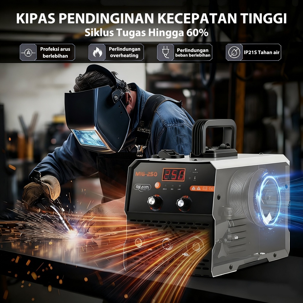 Reaim Mesin Las Mig Inverter 450W Igbt - Welding Machine Portable Untuk Besi, Baja & Stainless