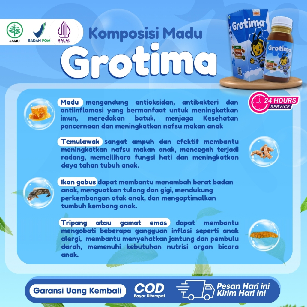 Madu Grotima 175Ml Vitamin Nafsu Makan Anak / Penambah Berat Badan Dan Kecerdasan Otak Anak