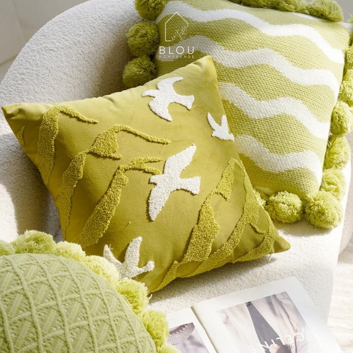BLOU SARUNG BANTAL SOFA PREMIUM BORDIR EMBOS SERI HIJAU MEWAH LUXURY CUSHION PILLOW CASE - A