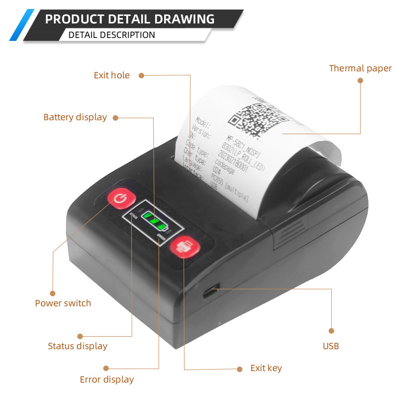Printer Termal Printer Bluetooth Portable Mini Batrai Ppob Kasir Free Gift 3Rol Kertas