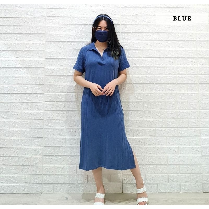 Amber Gamis Midi Slit Dress Rajut Hornet Wanita Muslimah Premium Termurah Knit