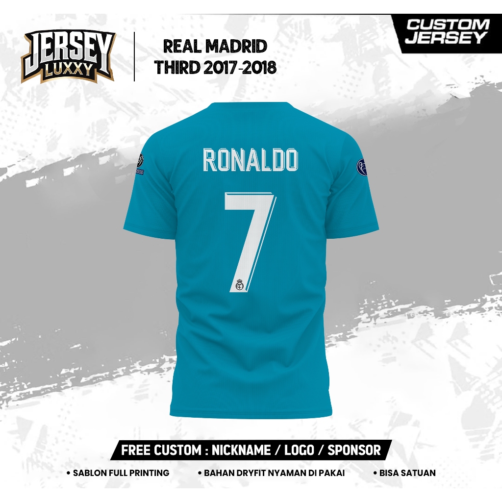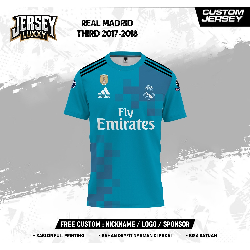 jersey bola REALL MADR1DD TH1RD 2017-2018 PENDEK, Free Custom Nama dan Nomor dewasa dan anak