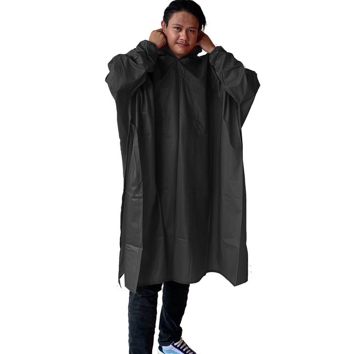 JAS HUJAN PONCO CELANA KHN PRIA WANITA DEWASA FULL SEAM ANTI REMBES ANTI SOBEK JAS HUJAN KELELAWAR DAN CELANA - HITAM