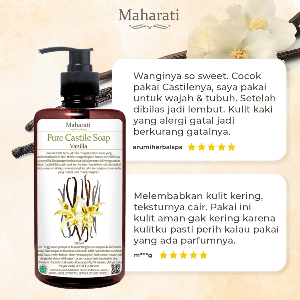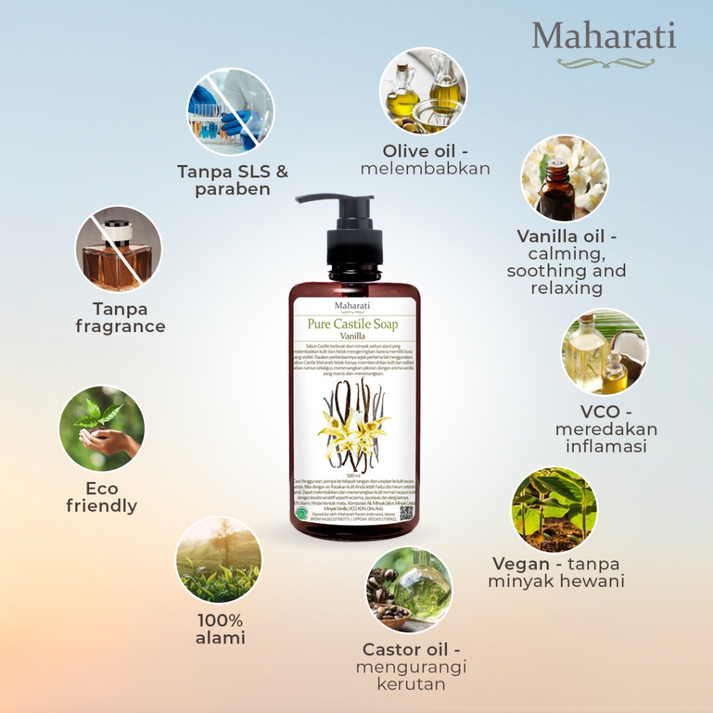 Maharati Pure Castile Soap Vanilla Sabun Cair Mencerahkan Dan Meredakan Jerawat Bpom Halal | Natural Soap | Anti Alergi