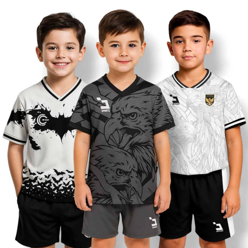 3 PCS Paket Jersey Hemat isi 3 pcs baju bola baju Jersey Anak Baju Futsal Anak Baju Olahraga Anak Usia 6 -13 Tahun