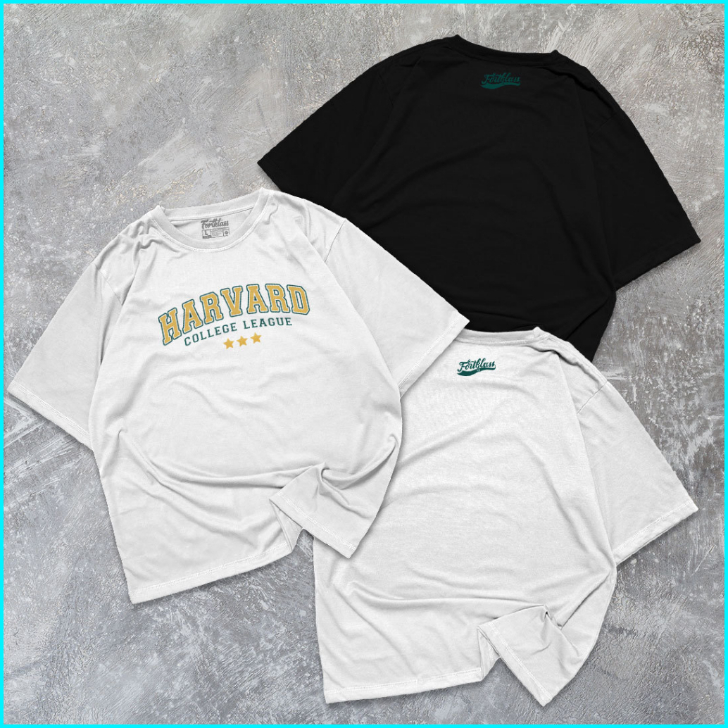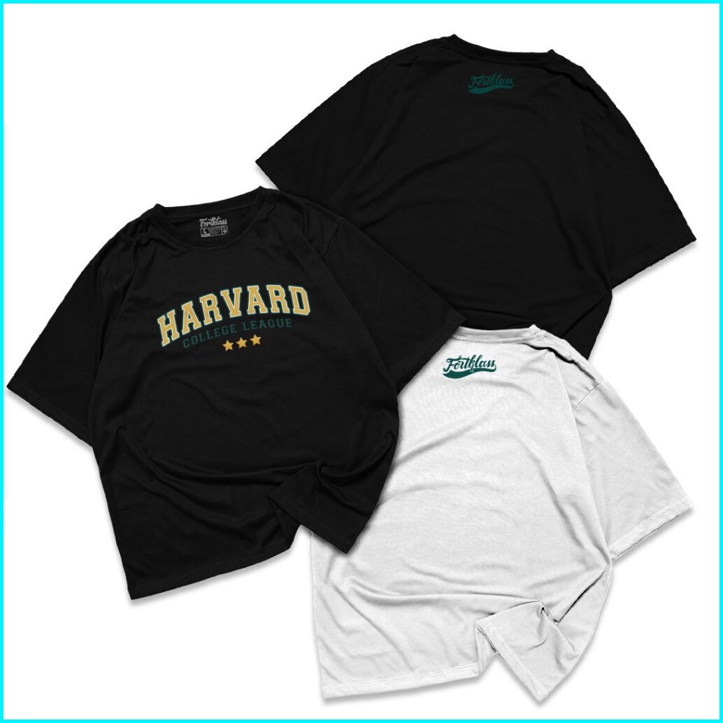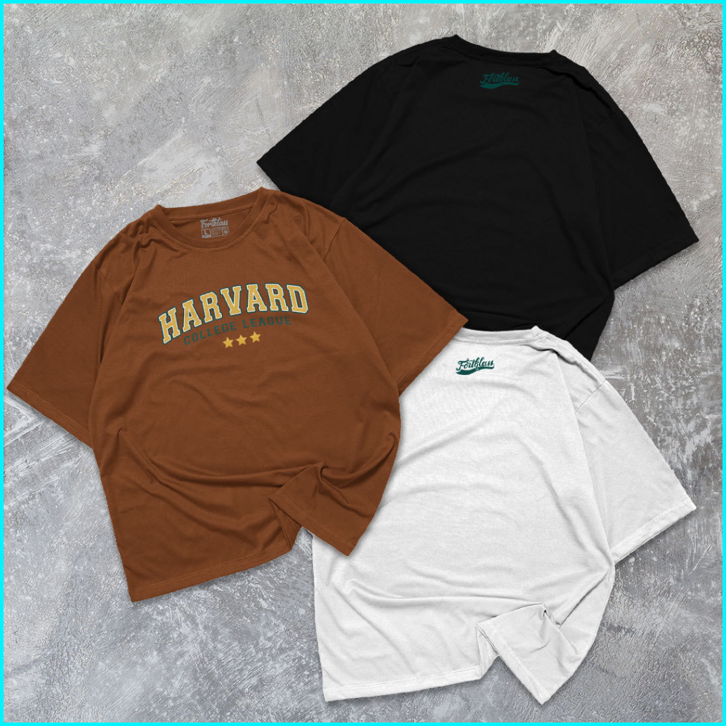Fortklass Kaos Oversize Harvard T-shirt Cowok Premium Kaos Pria Lengan Pendek Jumbo