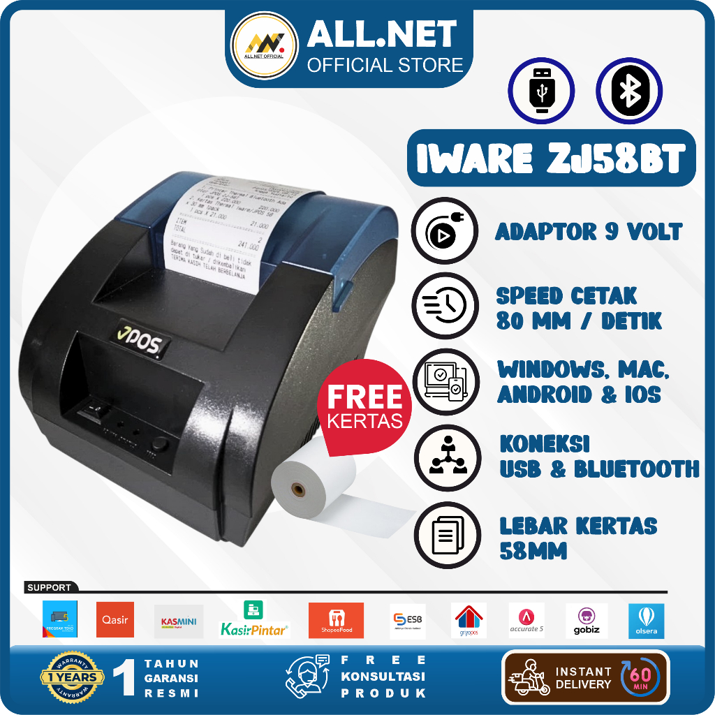 Printer Bluetooth C58Bt X58Bt Iware Jpos Thermal 58Mm Usb Bluetooth