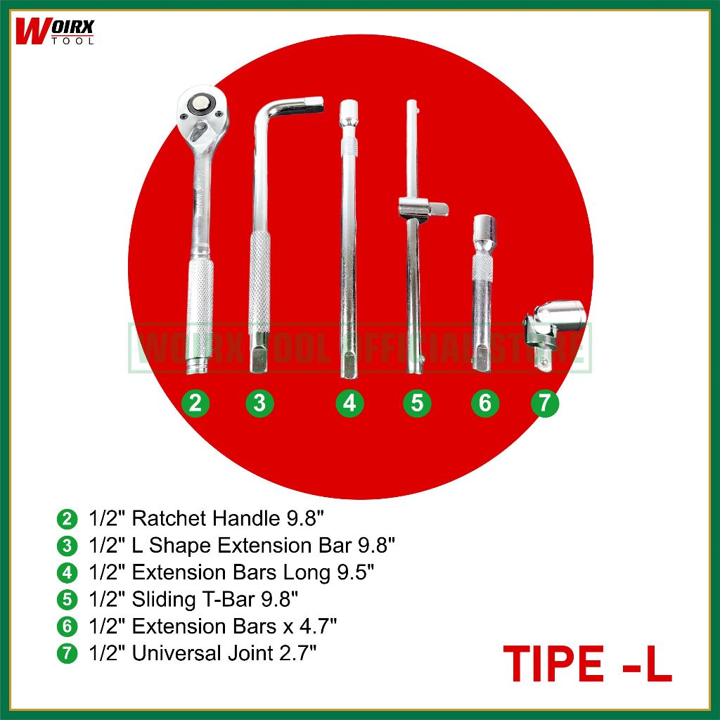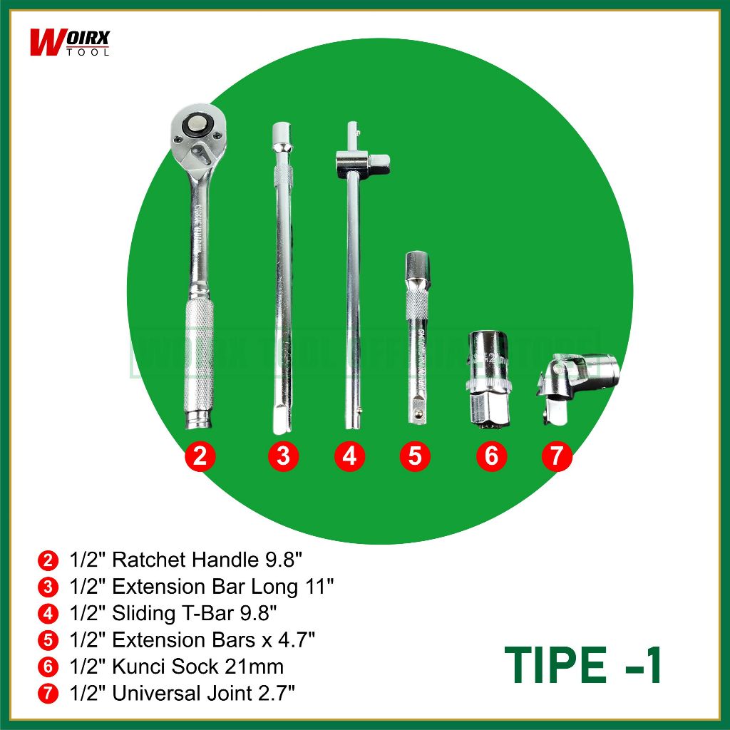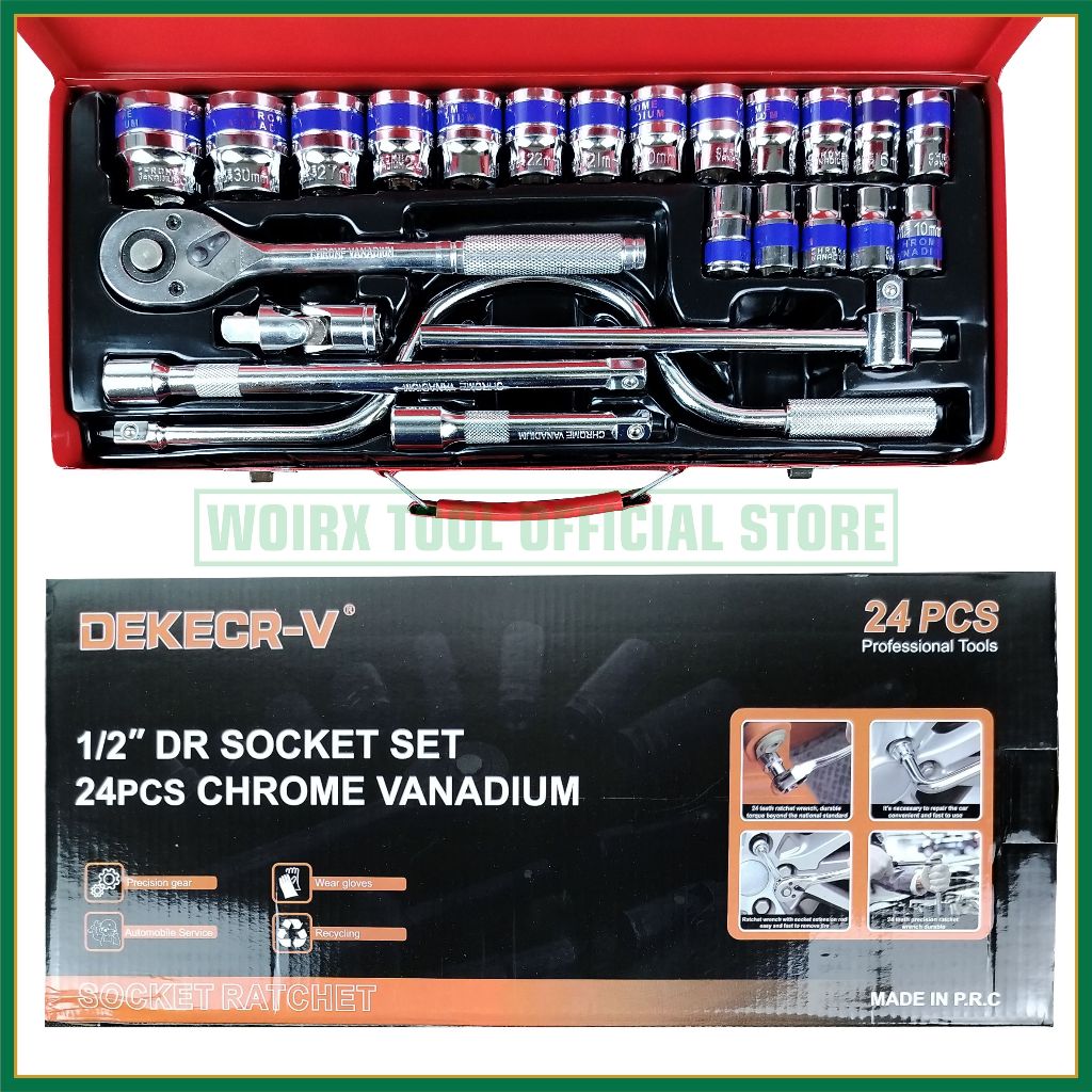 Woirx Tool Kunci Sock Sok Set 1/2" Inch 24 Pcs Socket Tool Kit