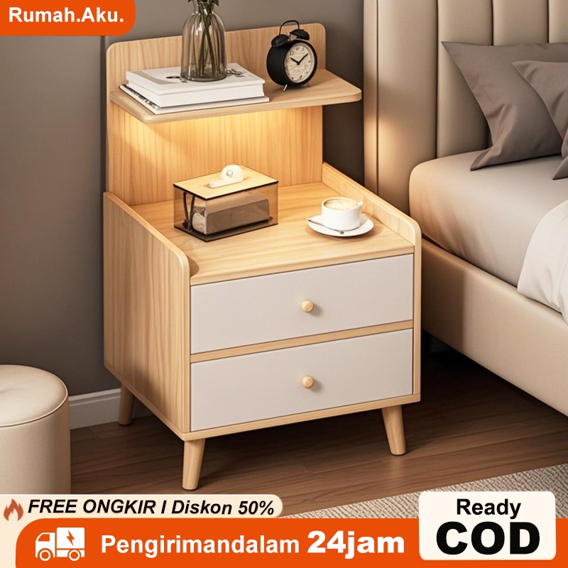 Meja Nakas 2 Laci Nakas Kayu Bedside Table Lemari Penyimpanan Nakas Minimalis 37X30X70Cm