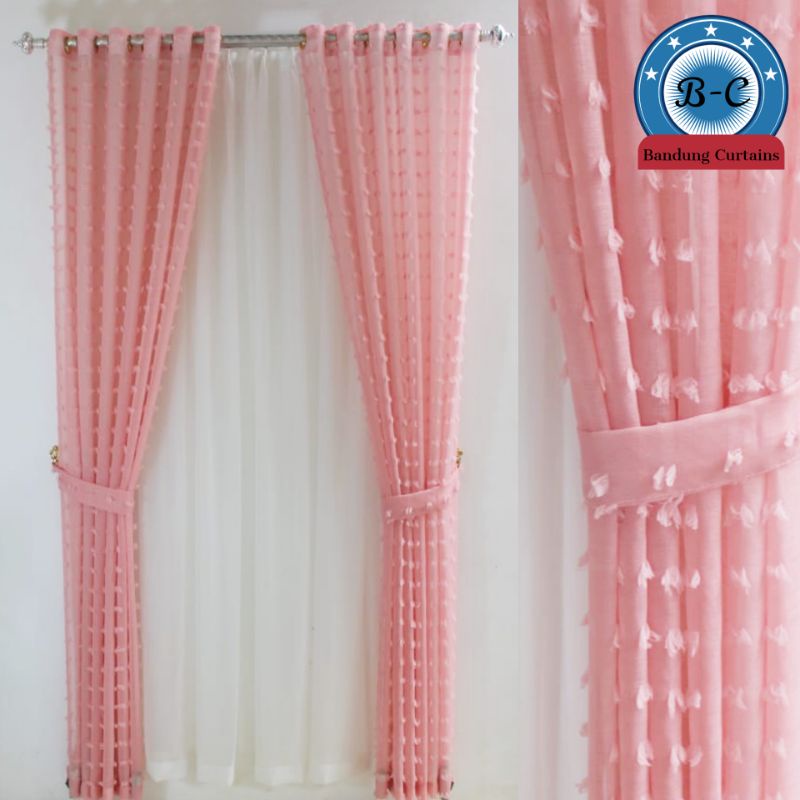 Gorden jendela pintu RUMAH vitrase poil pink merah abu model smokring 12 lubang 6 lipatan 140x200cm