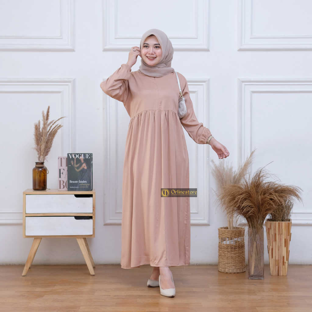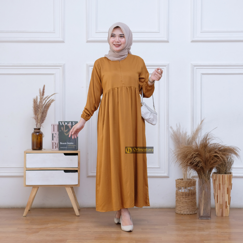 Midi Dress Polos Rayon Twill Busui Resleting Depan Nyaman Bumil Busui Friendly