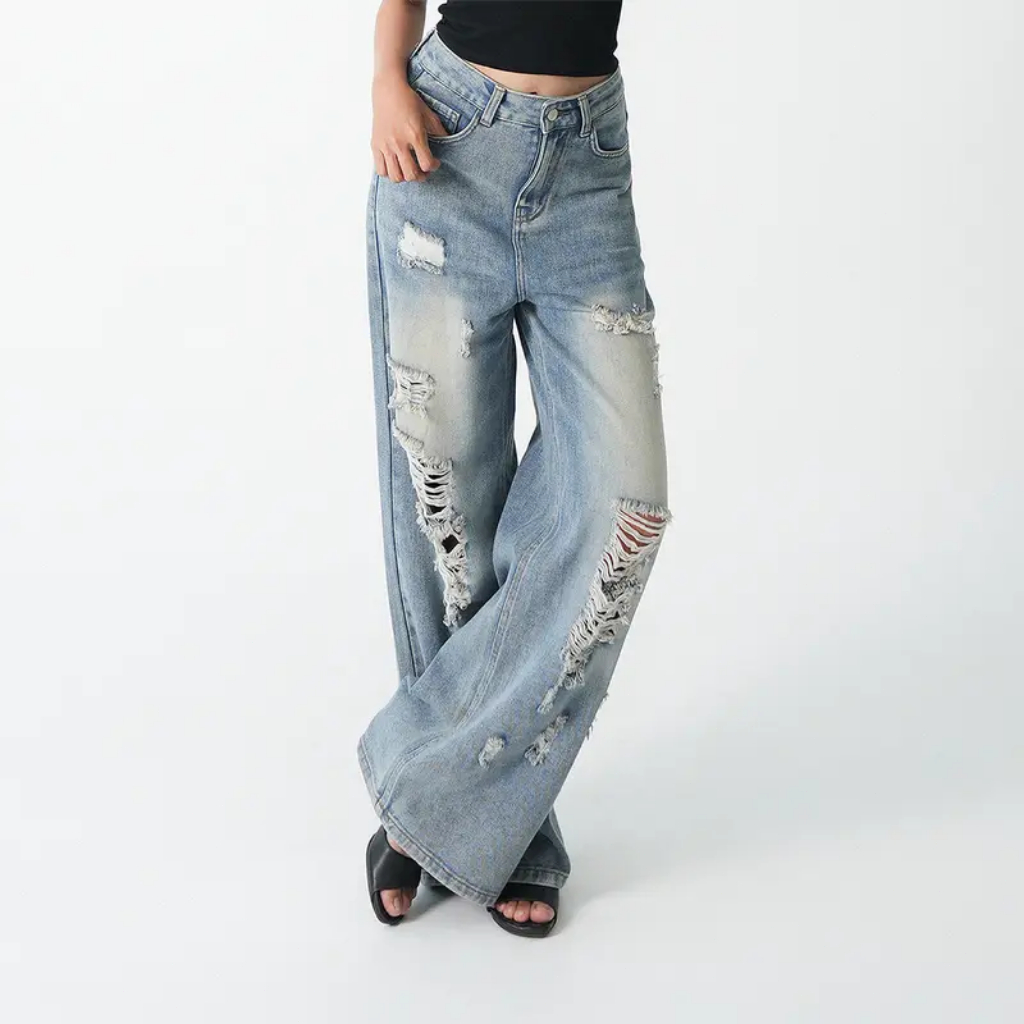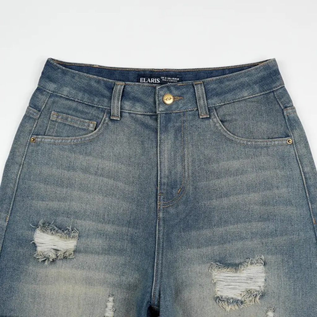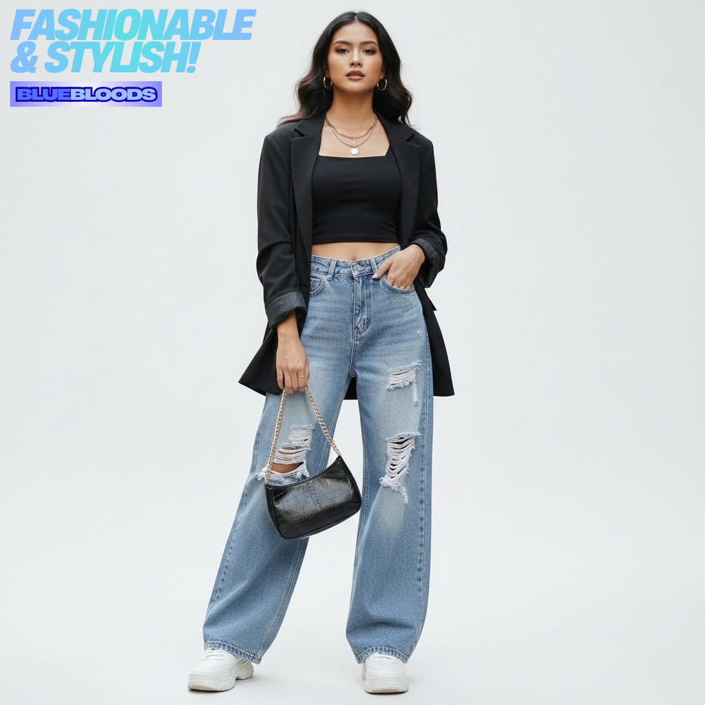 BLUEBLOODS - Ripped HW 8829 Loose Jeans Ripped Jeans Wanita Celana Panjang High Waist