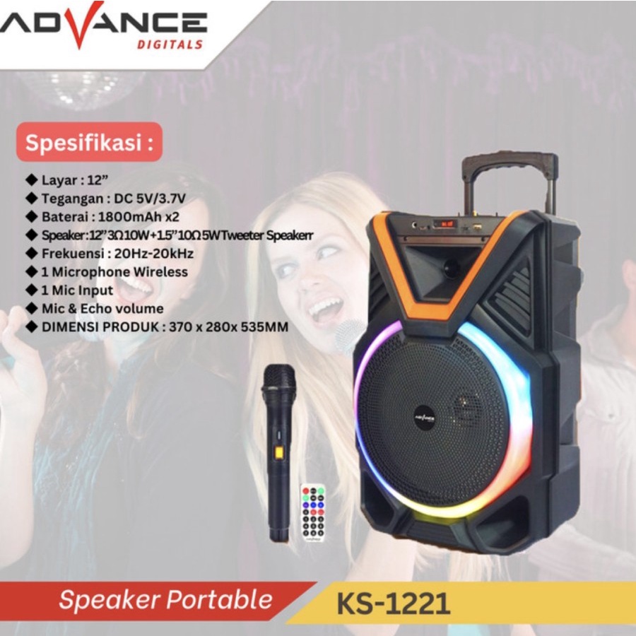 Speaker Advance KS-1221 12inci Meeting Bluetooth Portable + Mic Wireless KS-2613 Karaoke pengajian
