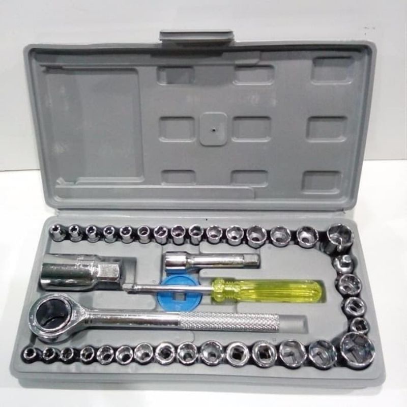 Paket Kunci Ring + Kunci Pas + Kunci Sock 40 Pcs + Kunci L + 4 Pcs Kunci T + Gagang Rachet + Obeng