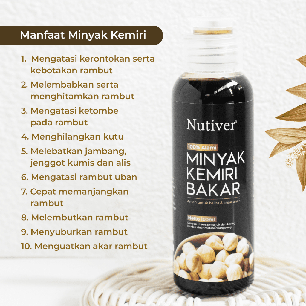 NUTIVER Minyak Kemiri Bakar Penumbuh Rambut Murni 100ml Perawatan Rambut & Kulit Kepala Alami