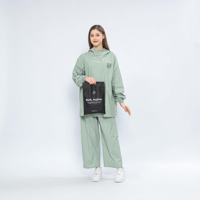 JAS HUJAN HOODIE RAINPRO PRIA WANITA BAHAN TEBAL KUAT ELASTIS ANTI REMBES ANTI SOBEK MANTEL PVC SETELAN STYLISH - HITAM, L