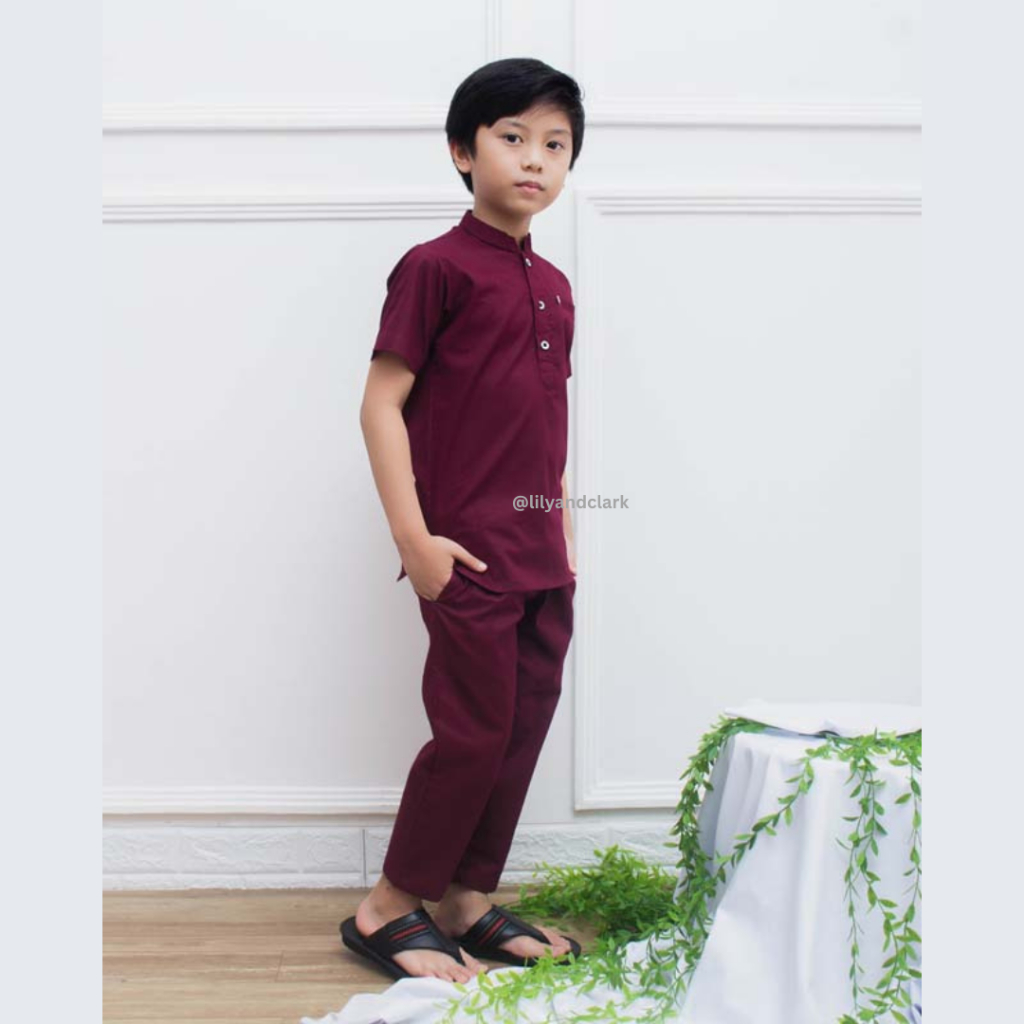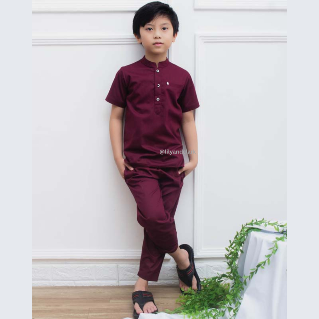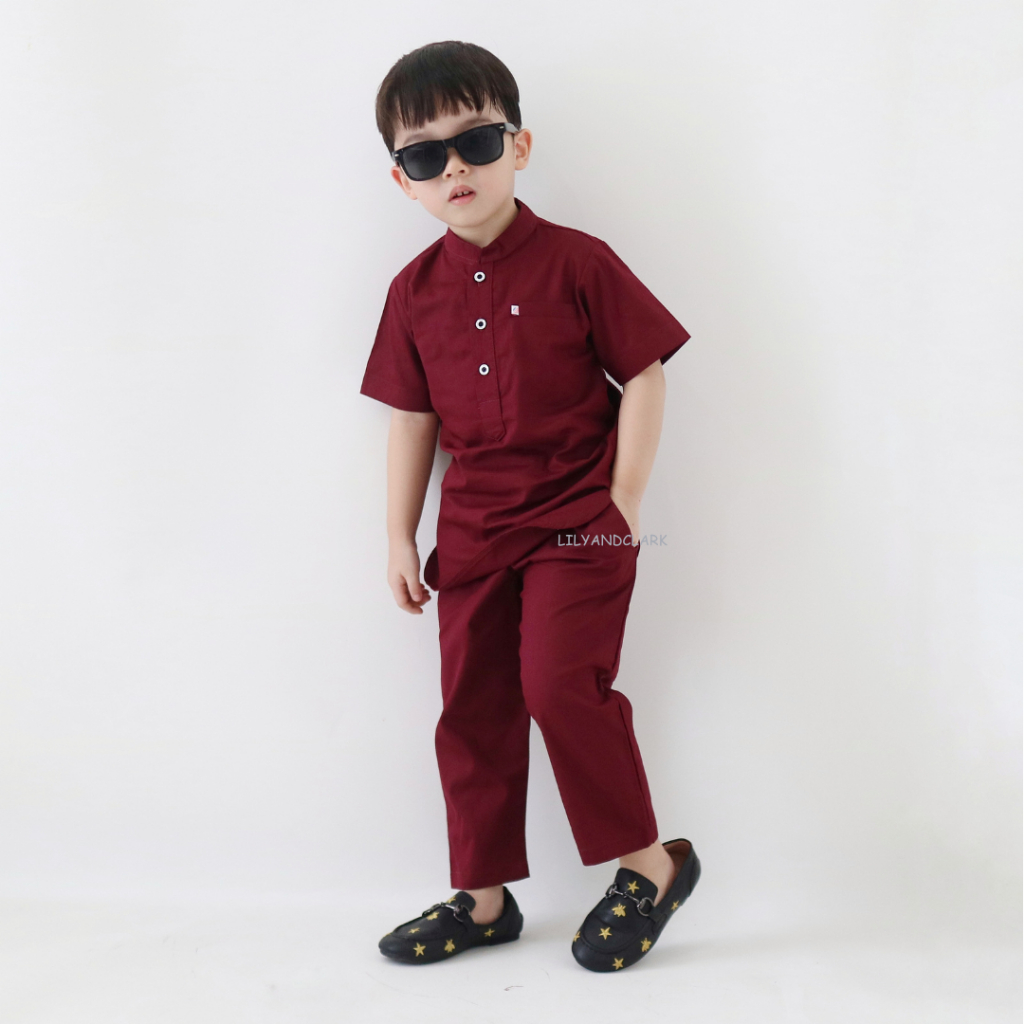Lily and Clark koko setelan anak laki laki warna Maroon SK05 Bahan adem kece dan trendy