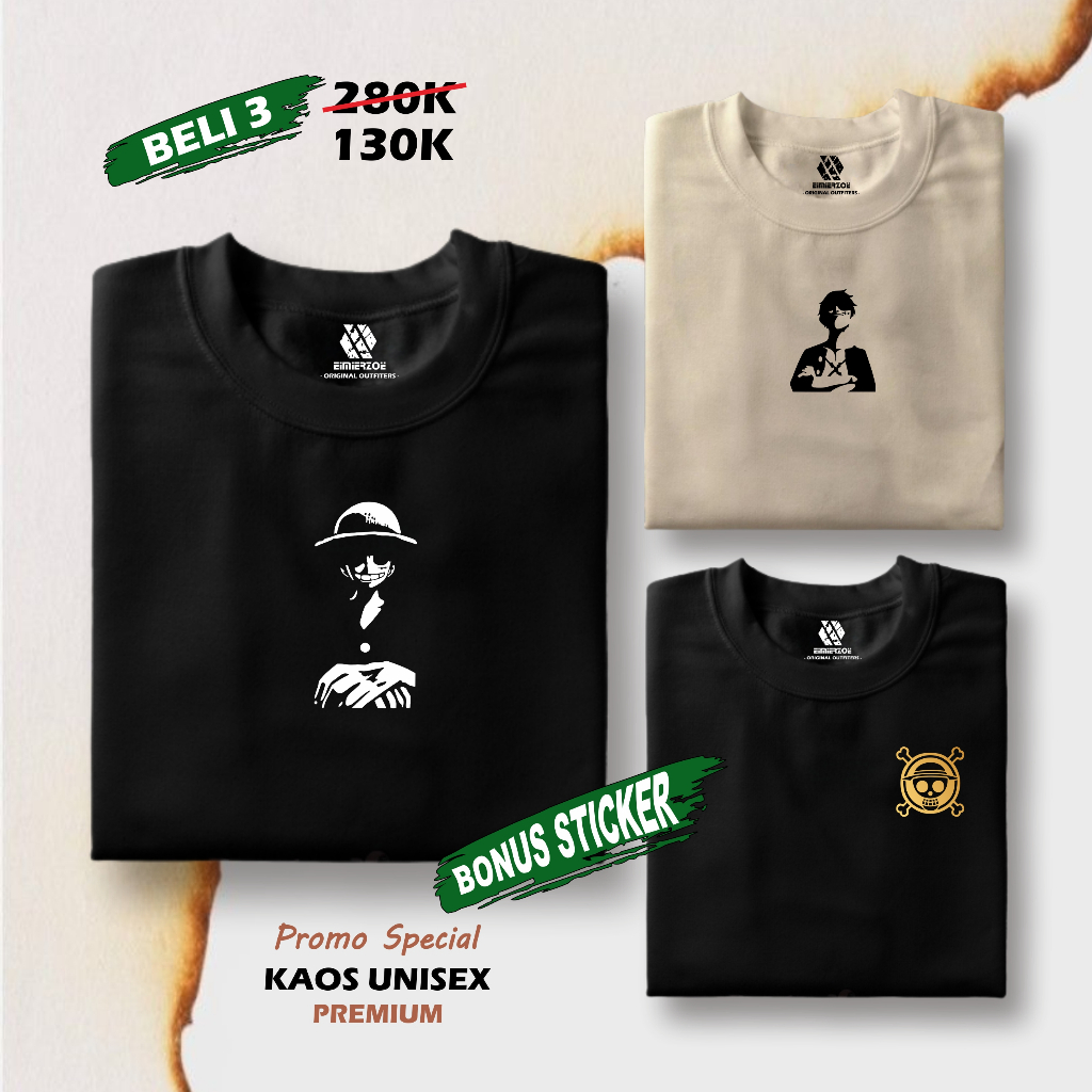 Eimierzoe Buy 1 Get 3 Pcs Baju Kaos Pria Distro Cotton Combed 30s Premium T Shirt Luffy One Piece