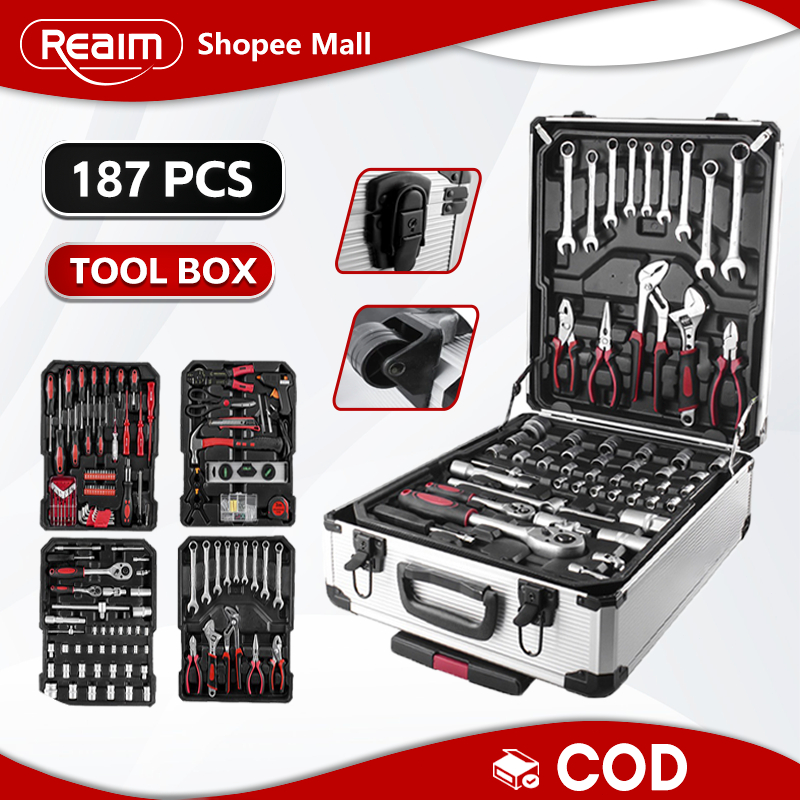 Tool Kit 187 Pcs 1/2 1/4 Inci Kunci Set Socket Wrench Pas Sok Set Car Repair Tool Kunci Inggris Kunci Sok Set Perkakas B