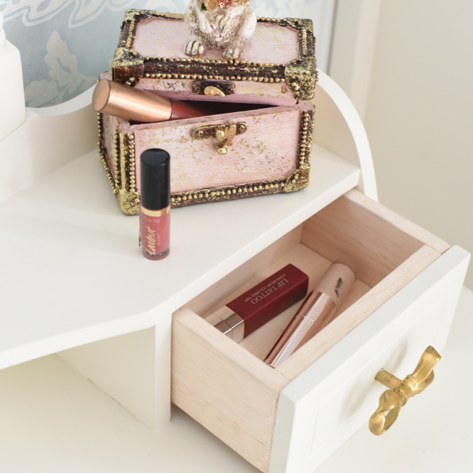 Meja Rias Set Minimalis Estetik + Kursi Putih White Aesthetic Kayu Belajar Cantik Classic Cermin